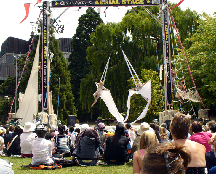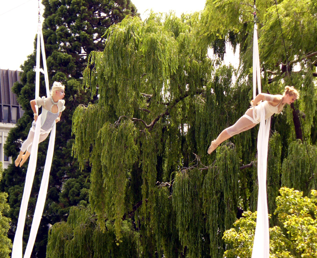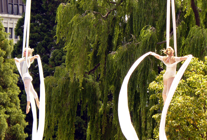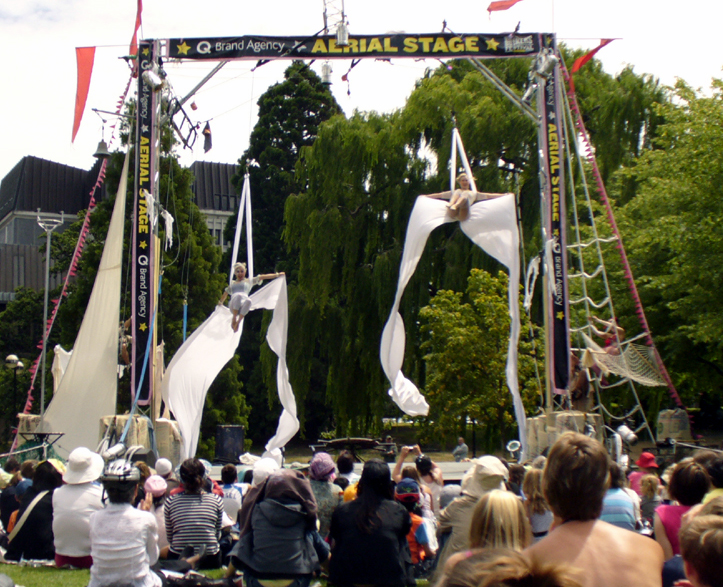 A lithe figure swoops through the air suspended by a flowing length of coloured silk. They twist gracefully through a series of complicated somersaults and spins, before dropping suddenly and with heart-stopping speed towards the floor – to stop, in perfect control, inches from the audience!